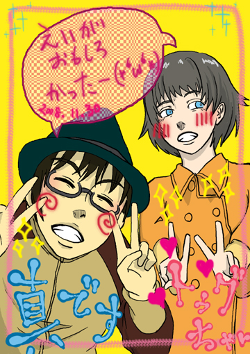 もう なんというか モニターの中へ入ってしましたいです 以下妄想 読まないほうがいいかもよ 無理におねがいして プリクラ撮ろうと無理にお願いして なんとかかんとか撮ろうかってことになって 笑って笑って にってにって ってわいわいさわいで それでもトゥグリルはなんかぎこちない笑顔になったり照れ隠しにどっか違うとこ見たりってなっちゃうんだけど でもそれがかわいいもんだからあえてそれをチョイスして いざらくがきなったら トゥグリル自分の顔ぐしゃぐしゃ塗りつぶすもんだから ぬったとこから「もーw」って言いながら消していって さっきのぎこちない笑顔のほっぺに 照れてるような斜線いれてみたり ああああああああああああああああああああああああ ごめんなさい 今になって後悔の念が うとさんごめんなさい ちなみに元ネタは「リア充の方々が (*‘ω‘ *) の意味を知らないで 大切なプリクラに書いたりしちゃってたら悲惨よねw」ってとこでした かわいい見た目にだまされちゃだめってあれですよ ちょっと病院いってくるお ^ω^